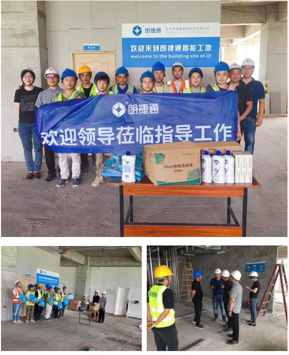 为了表达对奋斗者的致敬与关怀,朗捷通总经理林海、副总经理刘亚峰、内审中心总监兼工会主席姜永新、人力资源中心总监丁琰深入一线,实地走访多个项目施工现场,为项目人员及施工班组送上清凉用品,将公司的关怀传递给高温下的奋斗者们。