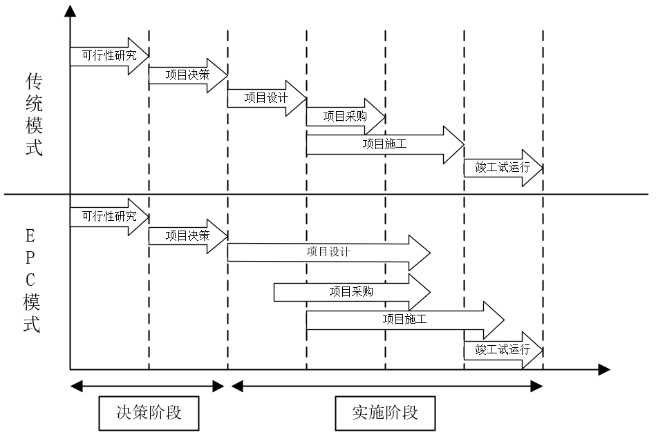 近年来,国家发展进入“新常态”。在工程项目渐渐发展的大环境下,寻求改革突破的关键时期,国家进一步推进EPC工程总承包模式。EPC工程总承包与施工总承包模式相比,能更好的降低项目成本、缩短建设周期、保证工程质量。由于承包商能充分发挥设计主导作用,有利于实现施工统筹安排,易于掌控项目的成本、进度和质量。对业主来说合同关系比传统模式简单,组织协调工作量较小,而且责任明确,业主承担风险较低等特点。