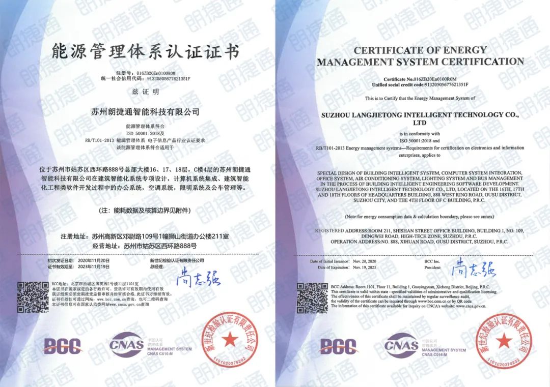 喜讯 | 朗捷通喜提“能源管理体系认证证书” |