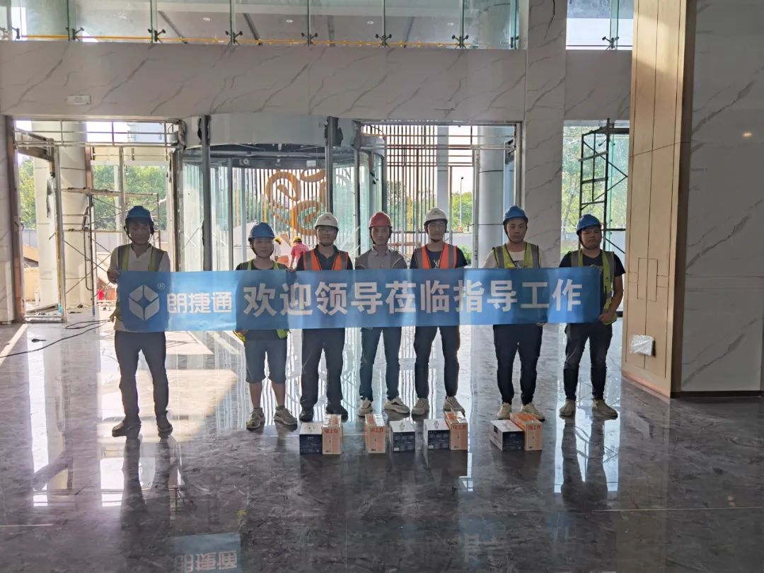 翁总、林总对目前所完成的工程质量表示肯定,希望大家继续保持高质量的工艺标准,彰显朗捷通品质,不辜负业主所托。并且还不忘叮嘱大家在施工过程中要注意安全,把安全文明施工放在首位。