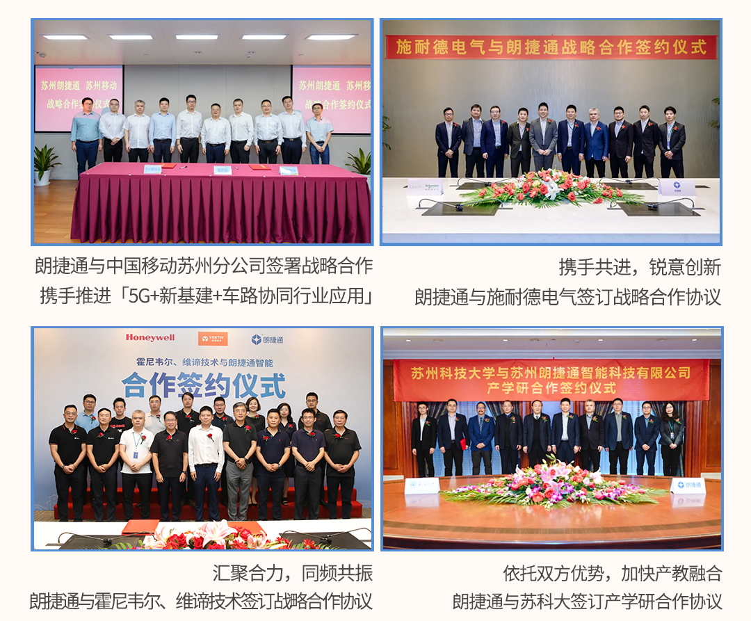 溧阳首家国际五星级酒店落成,炫彩5D全息投影惊艳众人从时尚现代的金鸡湖到底蕴深厚的环古城,朗捷通徒步节作为一项公司特色活动已延续至第三届,参与的人数逐年递增,向社会各界展示了朗捷通人不断拼搏、奋进的形象。春华秋“石”,永不止步,第三届朗捷通徒步节圆满举行鲁班奖的获得,充分肯定了朗捷通在专业技术和施工品质的双重价值,彰显了公司的核心实力,映照出一片更为广阔的市场前景。未来,朗捷通将继续为行业带来更优质、更专业的作品,为智能化行业持续健康发展做出积极贡献。INDUSTRY UNIVERSITY RESEARCH产学研合作是以企业技术需求为核心,在人才培养、科技开发和经营活动中有机结合,为企业数字化转型助力添彩。未来双方也将紧密合作,依托各自优势,融合创新技术,实现更多科技成果转化和人才培养。依托双方优势,加快产教融合,朗捷通与苏科大签订产学研合作协议